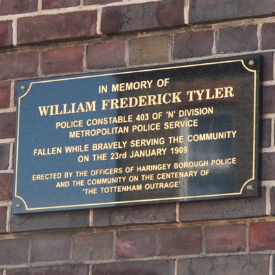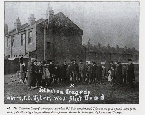 | The King also expressed his sympathy in the following words " The Commissioner is commanded to convey to the police officers engaged in the tragedy at Tottenham the King's high appreciation of their gallant conduct. His Majesty also directs that the expression of his sincere sympathy may be communicated to the widow and family of Police Constable Tyler, killed while courageously doing his duty" |