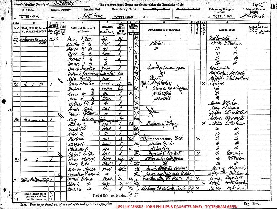 E Phillips aged 50 years) Mary and her father John Phillips were now living at their house on Tottenham Green. |