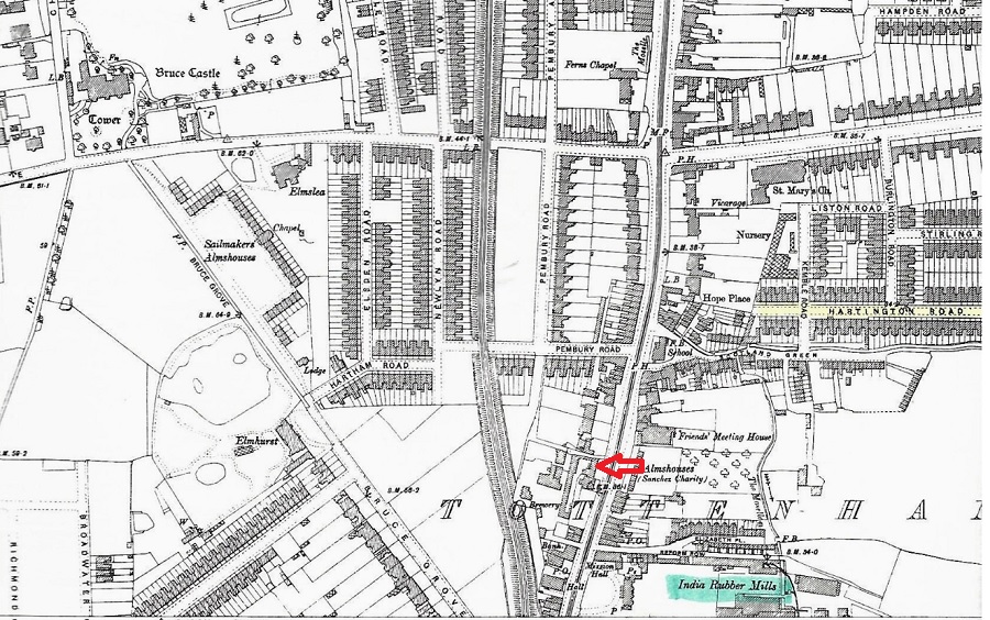 (Mary E Phillips - aged 30 Years) Mary and her father John Phillips (now a widower) had moved to 575 High Road, Tottenham -Opposite Sanchez almshouses- see map below. |